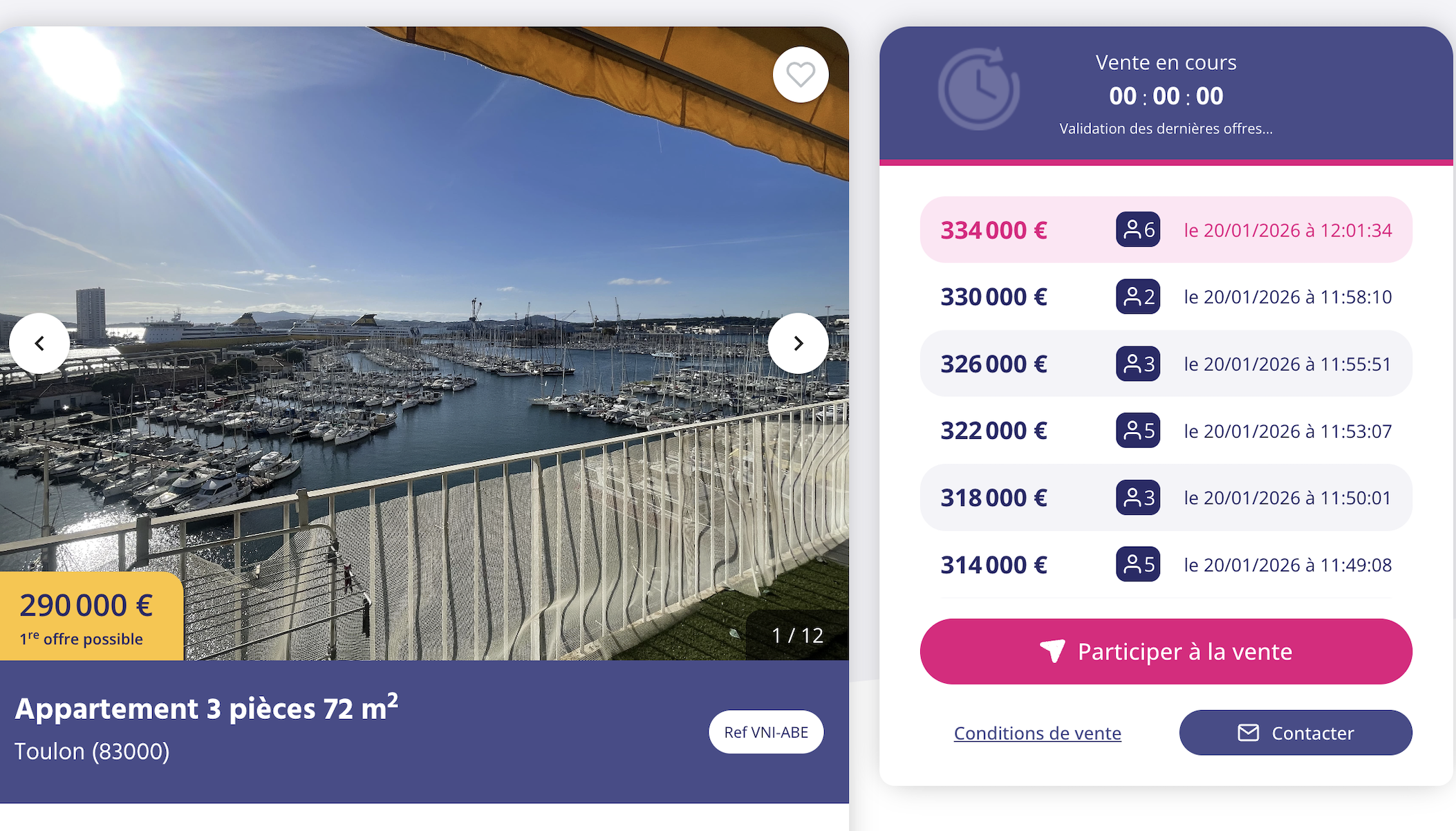 Première offre 290 000€ / Dernière offre 334 000€